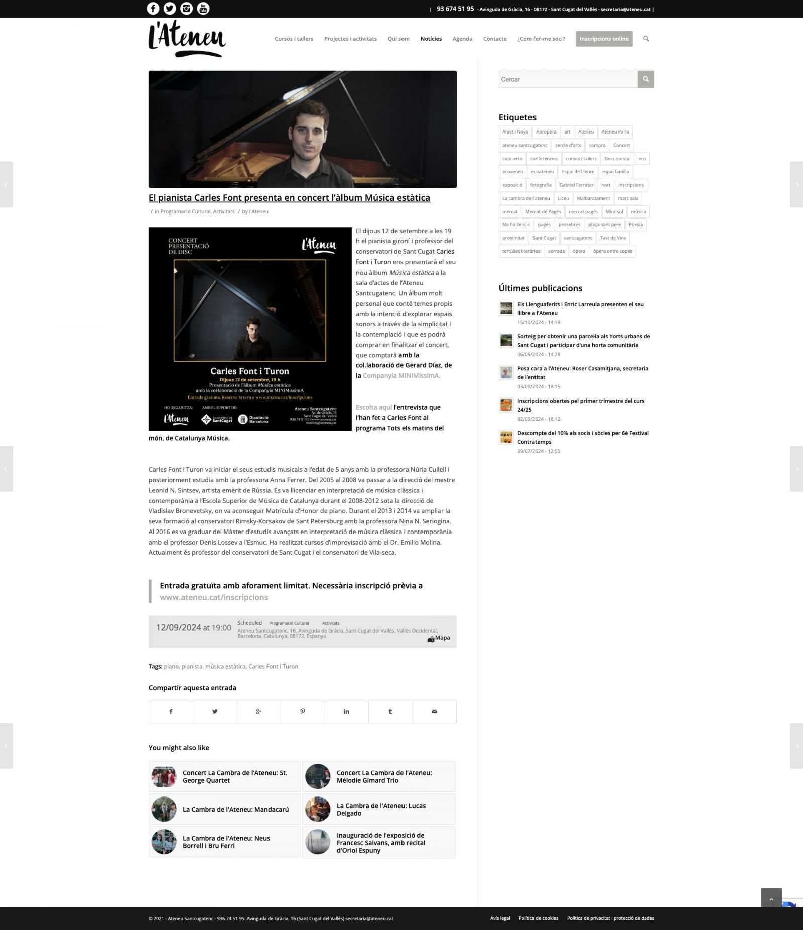 23-11-2024Concert Con-fusión Project a Banyoles | + agenda 23-11-2024 20:00 23-11-2024 20:00 Europe/Madrid Concert Con-fusión Project a Banyoles Ateneu Banyoles Ateneu Banyoles Carles Font - Pianista - www.carlesfont.com carlesfontpiano@gmail.com | ||