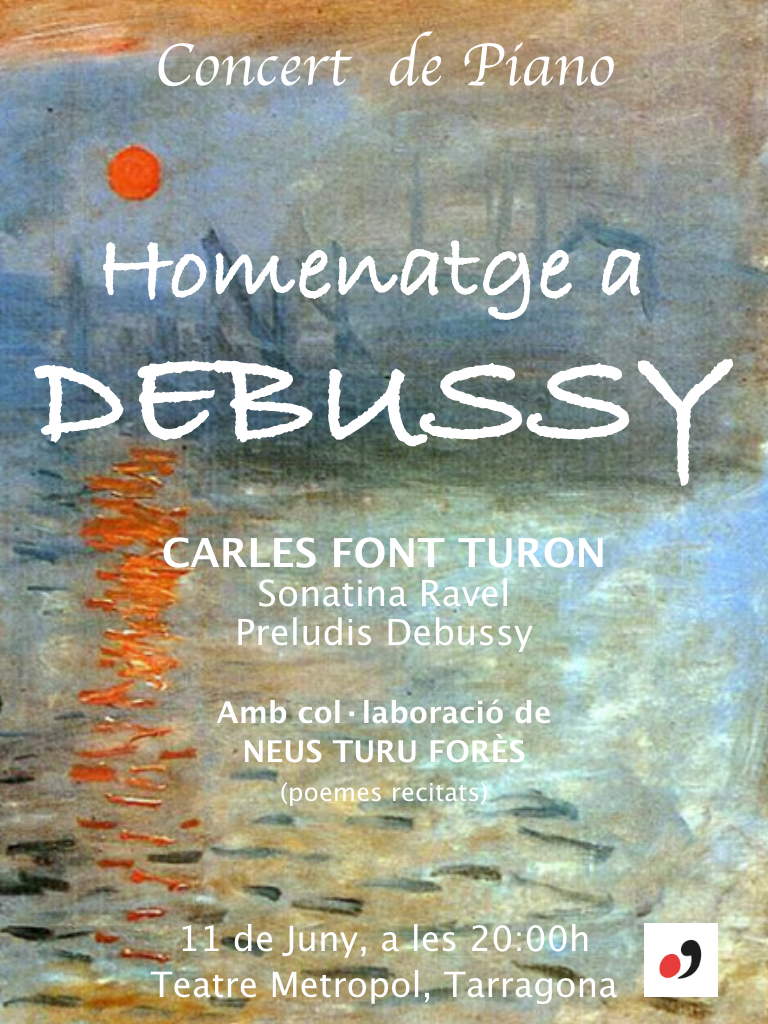 09-06-2019Homenatge a Claude Debussy | + agenda 09-06-2019 19:00 09-06-2019 19:00 Europe/Madrid Homenatge a Claude Debussy Teatre la Gorga Teatre la Gorga Carles Font - Pianista - www.carlesfont.com carlesfontpiano@gmail.com | ||
