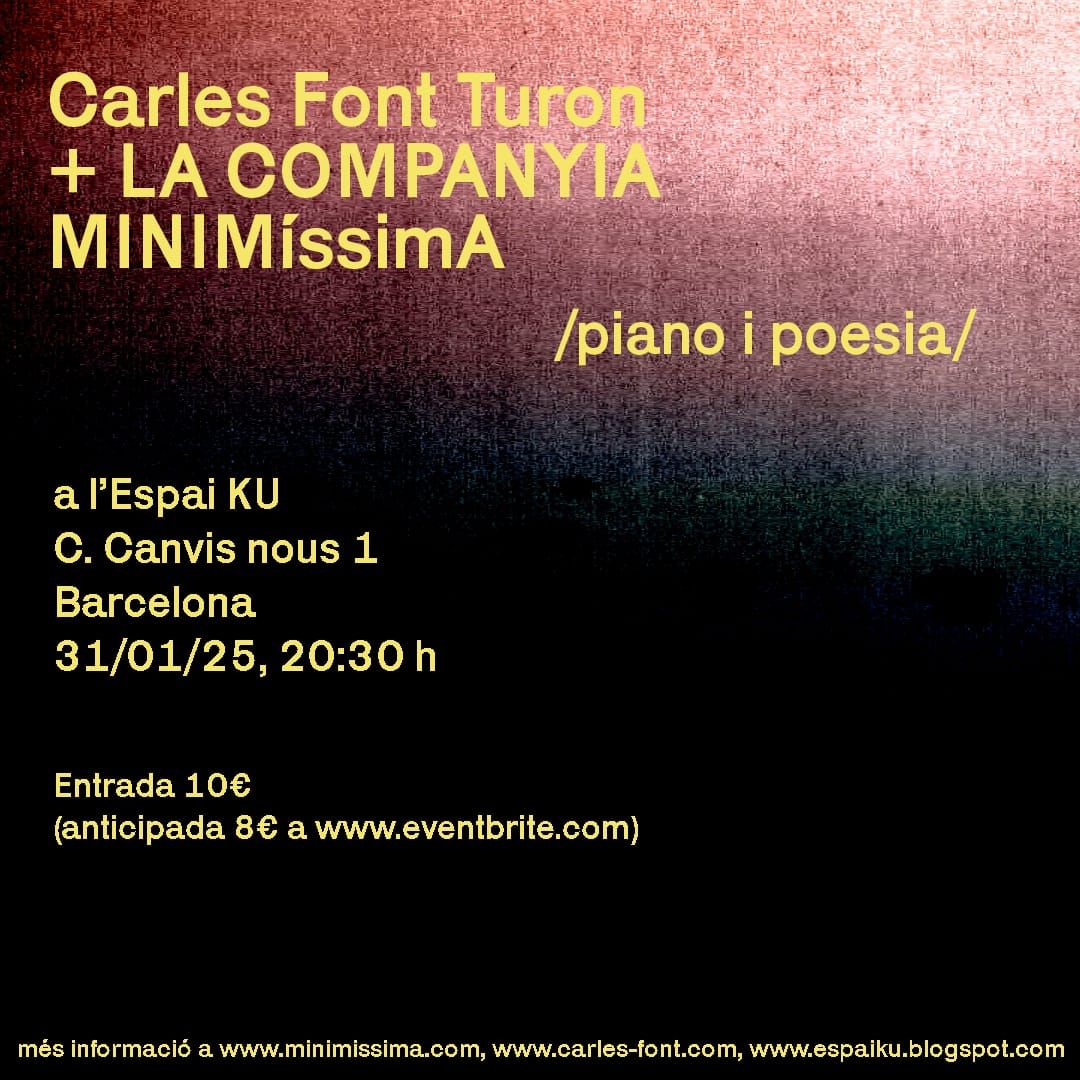 31-01-2025Moviment estàtic + Companyia MININíssima | + agenda 31-01-2025 20:30 31-01-2025 20:30 Europe/Madrid Moviment estàtic + Companyia MININíssima Espai Ku Espai Ku Carles Font - Pianista - www.carlesfont.com carlesfontpiano@gmail.com | ||